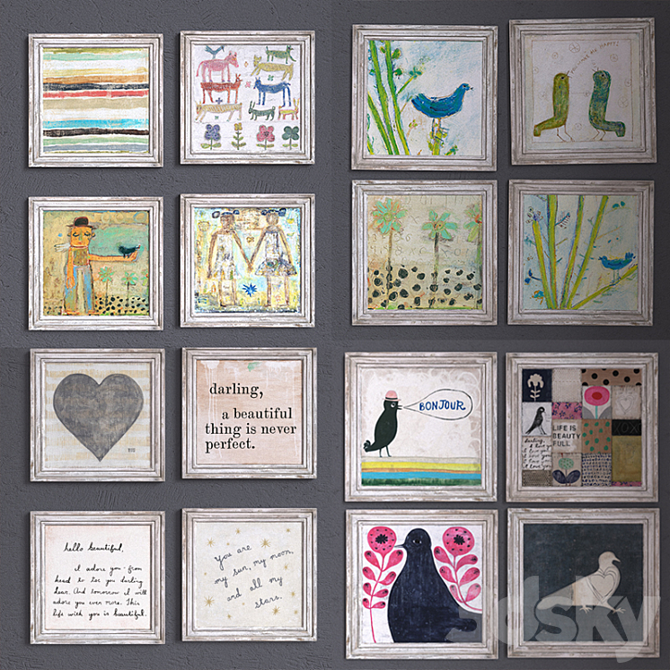 Материалы выполнены для CoronaRender(!) Версии 2011/2014 3dsmax+fbx. Материалы настроены, текстуры присутствуют. Набор картин в детскую (24 шт.)