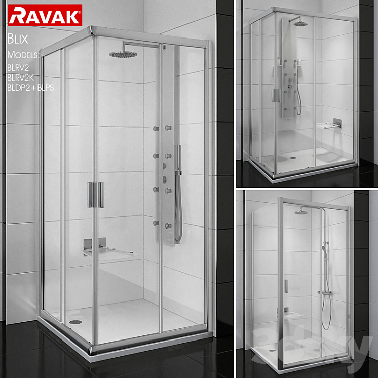 Угловые душевые кабины Ravak BLIX. В архиве модели: -BLRV2 -BLRV2K -BLDP2+BLPS Поддон, сиденье, душевая система и гидромассажная панель также в комплекте. Сайт производителя: https://www.ravak.ru/ru/dushevye-ugolki-i-dveri-blix Модель выполнена для corona render 1.5 и vray 3.6. В версии vray, BRDF материалов установлен в Microfacet GTR / GGX, обладателям vray 2.4 необходимо установить BRDF в Blinn. Отличных Вам рендеров!