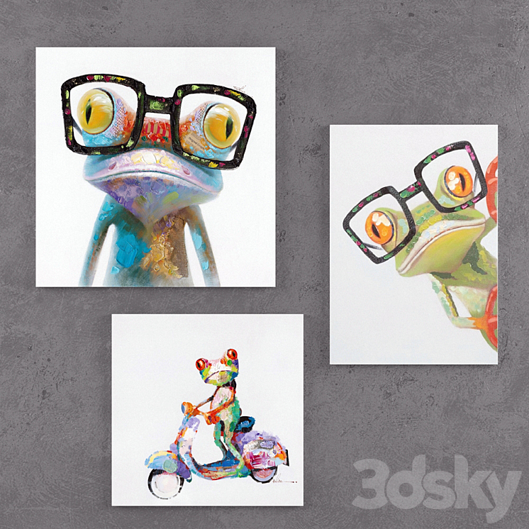 Paintings From Moe's Home Collection: - Smart Frog Wall Decor http://www.houzz.com/photos/28894703/Smart-Frog-Wall-Decor-contemporary-paintings - Urban Frog Wall Decor http://www.houzz.com/photos/paintings/seller--moeshomecollection - Peeking Frog Wall Decor http://www.houzz.com/photos/28902591/Peeking-Frog-Wall-Decor-contemporary-paintings The archive contains textures and .fbx file.