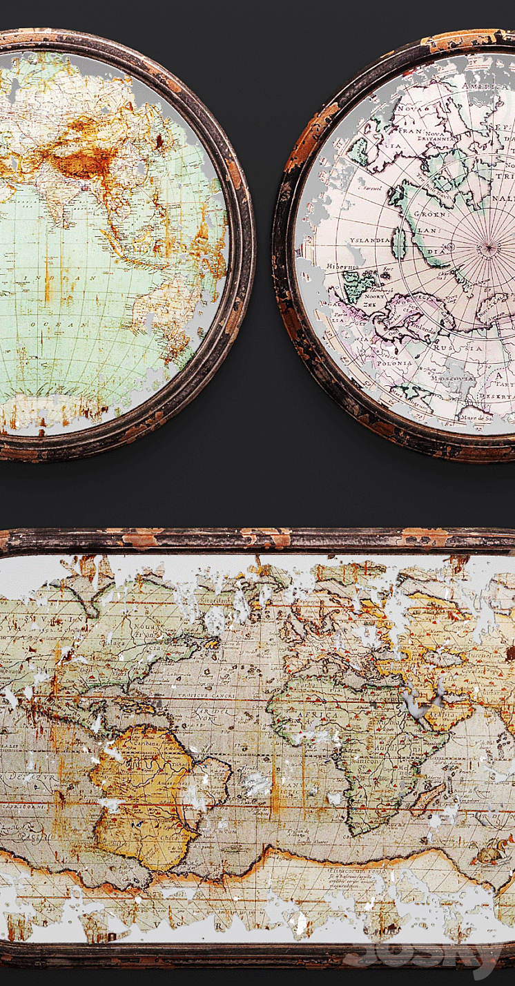 IMAX Corporation Accessories Mirrored Map Wall Decor - Set Of 3 65249-3 D-400mm. Width -800mm. карта, картина, мир, настенный декор