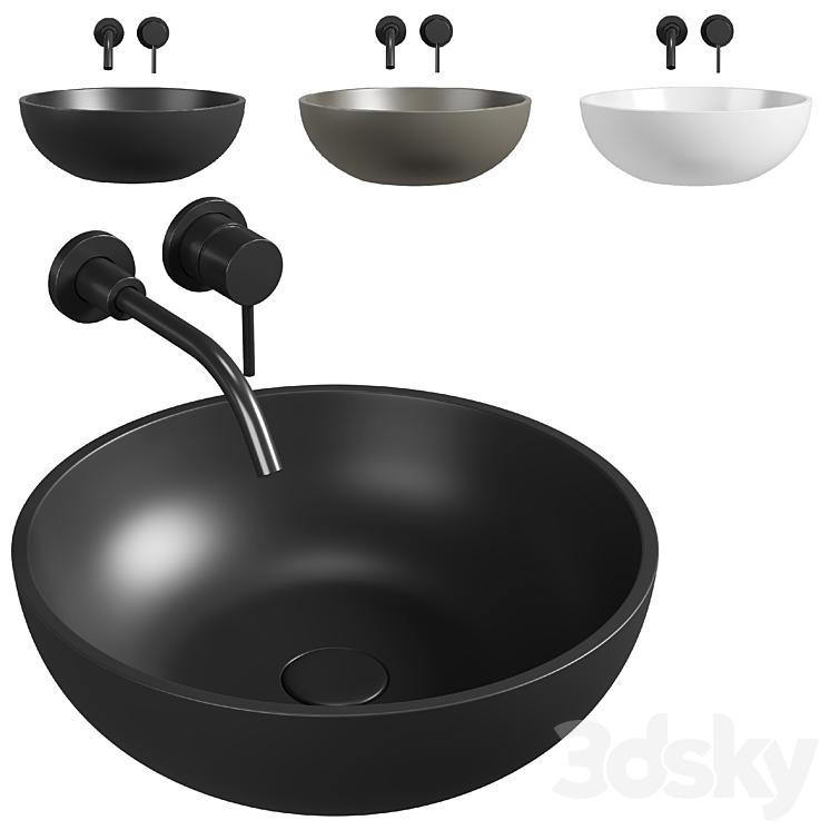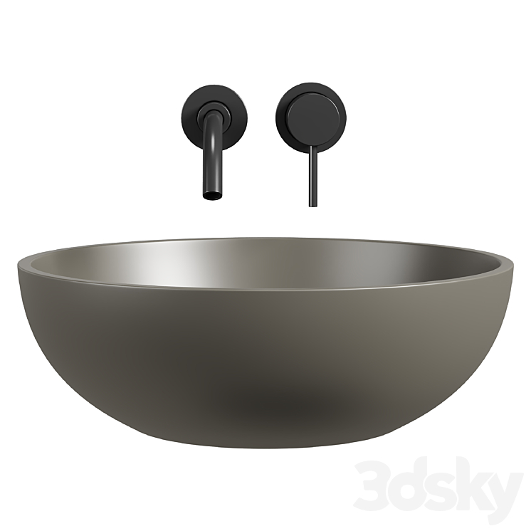 Oasis Pebble Grey Round Countertop Stone Basin 420mm Размеры созданной 3d модели выполнены в соответствии с размерами реальной фурнитуры.