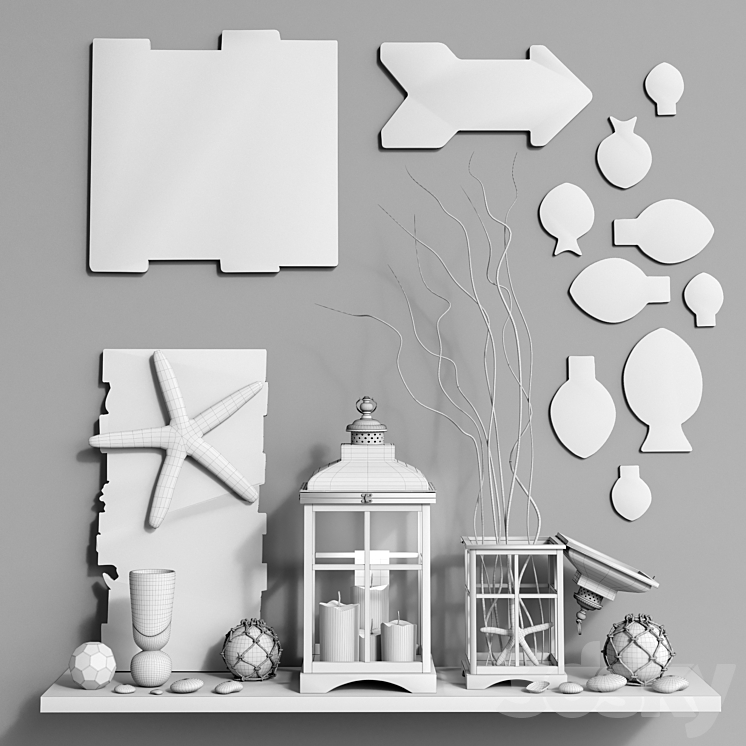 CORONA+ VRAY (2013) FBX (2009) Декоративный набор с морской и пляжной тематикой. Набор содержит : Полка ЛАКК (IKEA) ширина 1200 мм. Шары с плетением. Декоративные доски с пляжной и морской тематикой. Декоративный набор "Рыбки". Декоративный шар. Фонари. Ветки. Ваза. Свечи. Камни. Ракушка. Декор и аксессуары. Похожие наборы : https://3ddd.ru/3dmodels/show/decorative_set_1_17 https://3ddd.ru/3dmodels/show/decorative_set_2_18 https://3ddd.ru/3dmodels/show/decorative_set_3_8 Другие наборы : https://3ddd.ru/users/solomon5555/models