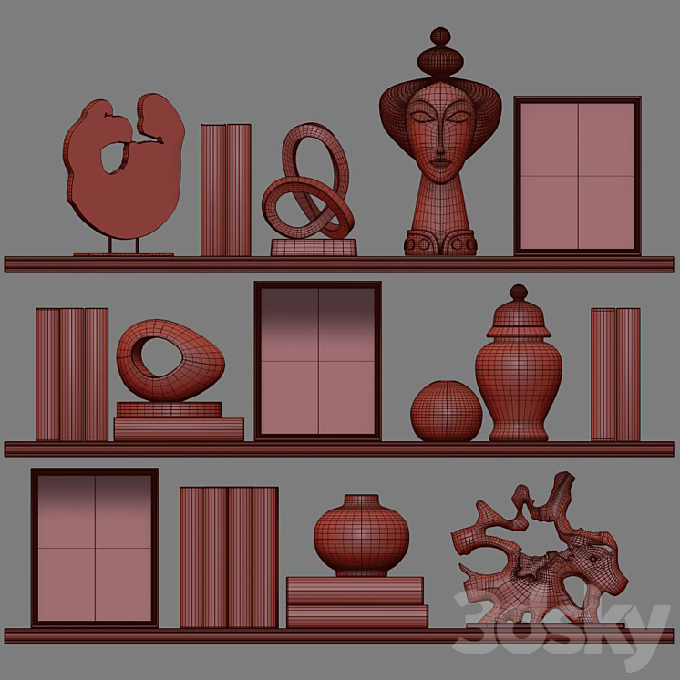Набор декора для интерьера - скульптуры - вазы - книги - постеры Max-файл 6.7 Mb Polys 58393 Verts 59569 Другие мои модели: https://3ddd.ru/users/remuhin/models