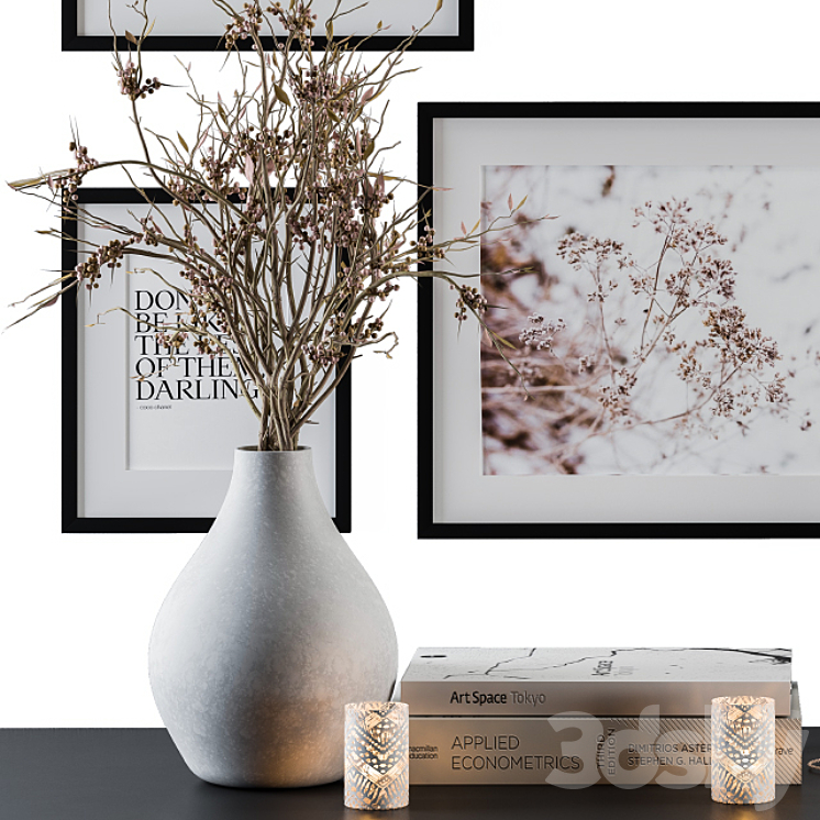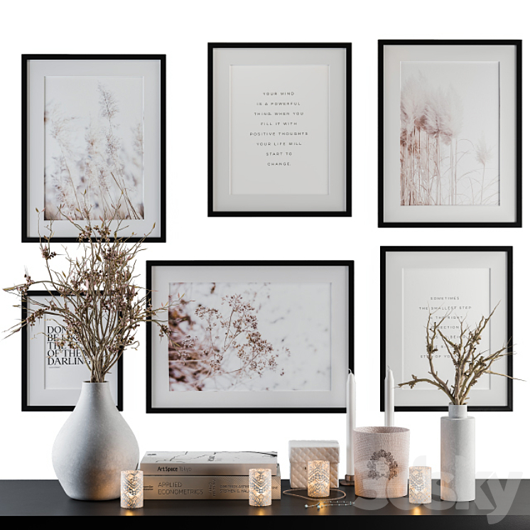 Decorative Set White and cream Frames and Dried Plants(model:3022722_Rectangle_Vray,Corona)