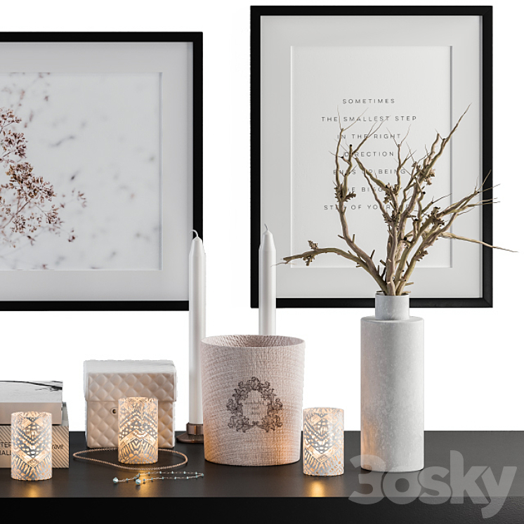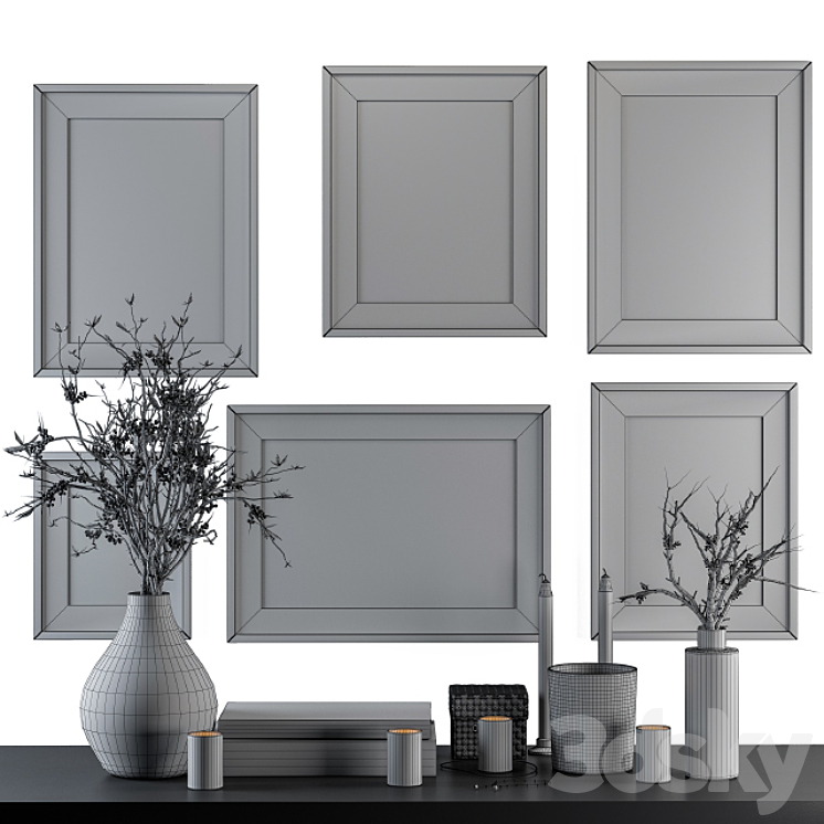 Koolaa 3D model » Decorative Set White and cream Frames and Dried Plants(model:3022722_Rectangle_Vray,Corona)
